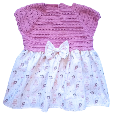 Vestido tejido a crochet rosa con lino hadas mágicas